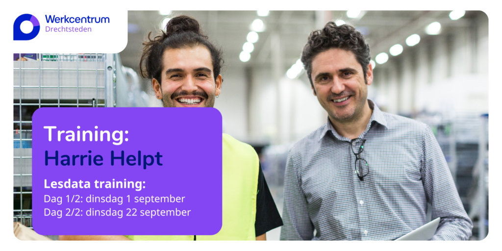 Trainingsdag één (1 september) gaat in op verschillende ondersteuningsbehoeftes, je rol daarin als Harrie en hoe je de begeleiding vormgeeft. Dit kun je gelijk in de praktijk toepassen. Tijdens de tweede trainingsdag, die we altijd een paar weken later inplannen (in dit geval op 22 september), staan we stil bij praktijksituaties, nemen we je mee in een aantal gesprekken en brengen we onder andere je organisatie in kaart om inzichtelijk te krijgen wat noodzakelijk is om succesvolle participatie mogelijk te maken.